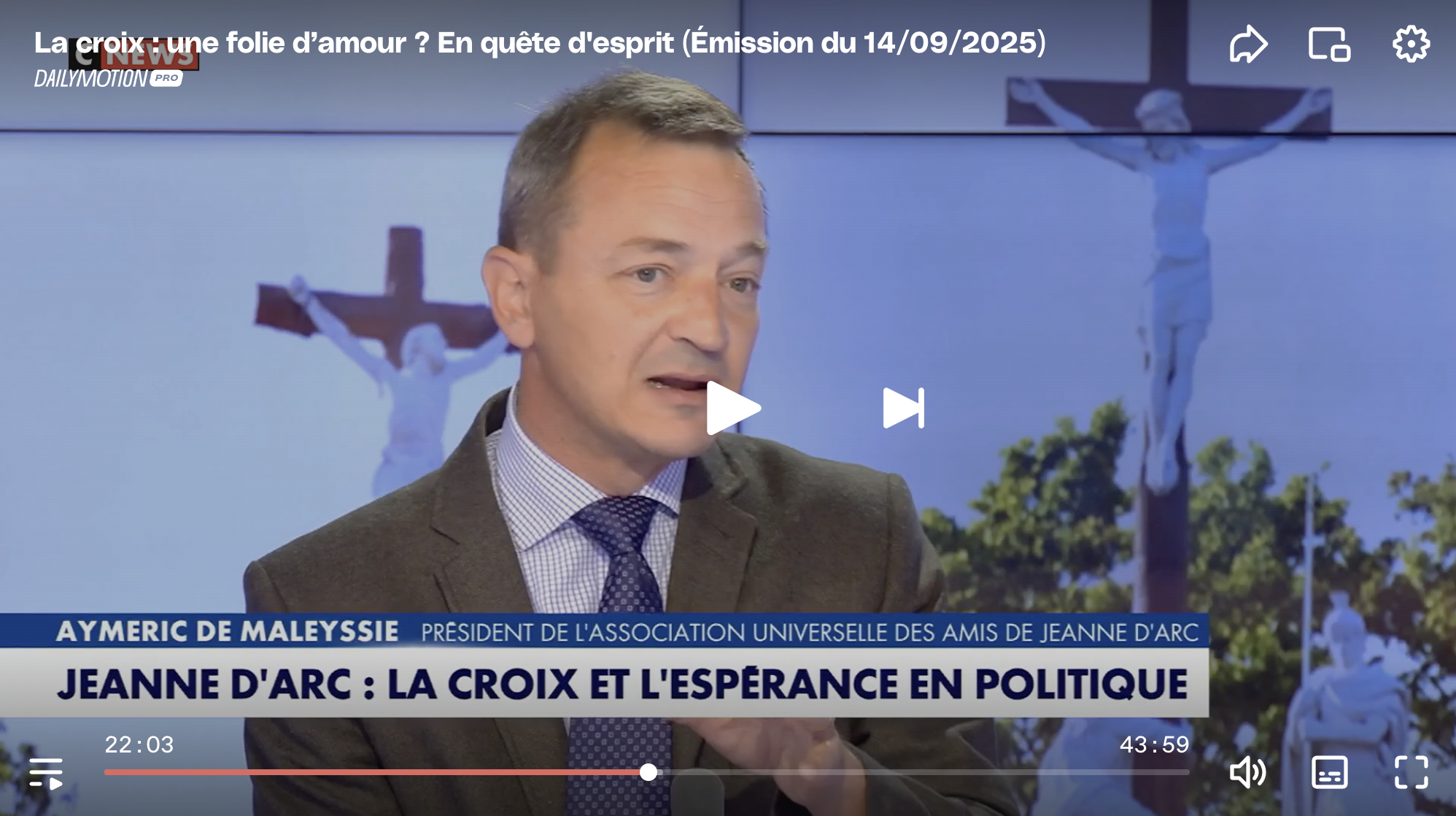 🎥 Aymeric de Maleissye était l’invité d’Aymeric Pourbaix dimanche 14 septembre dans son émission En quête d’esprit. Une belle occasion de parler de Jeanne et de notre pèlerinage !