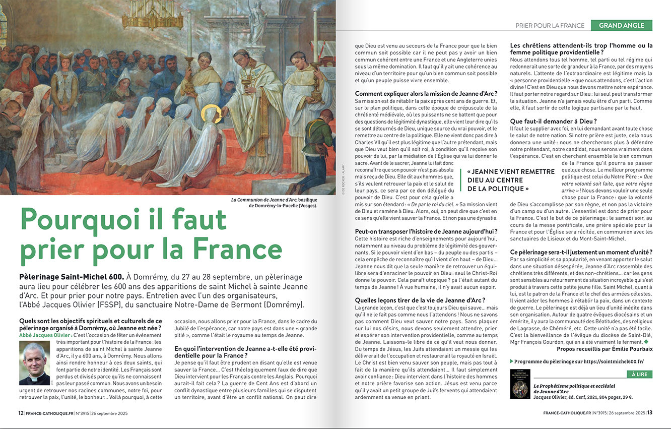 🗞️ L’hebdomadaire France Catholique vous offre son numéro de cette semaine en numérique, dans lequel vous trouverez, en page 35, une interview sur le pèlerinage du sixième centenaire de Jeanne d’Arc.