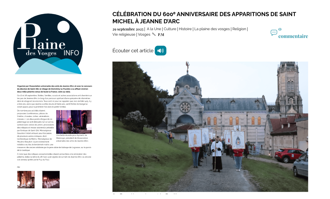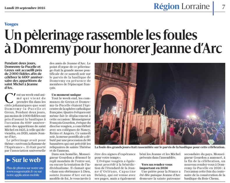 Un beau résumé dans la presse locale, qui était présente en force les 27 et 28 septembre 2025 à Domrémy pour couvrir l’événement !