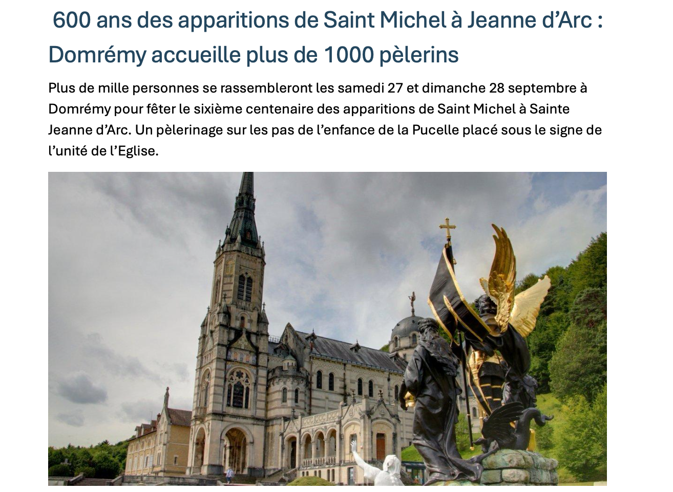 🗞️ Bel article sous forme d’interview dans le numéro de l’Homme Nouveau du 28 juin 2025. Vous y découvrirez l’ensemble du projet de la neuvaine d’années du 6e centenaires de l’épopée de Jeanne, dont le pèlerinage de l’Espérance constitue la première pierre !